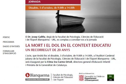 El dia 3 de octubre tendrá lugar en el Auditori de la Facultat de Psicologia de Blanquerna la Jornada “La muerte y el duelo en el contexto educativo. Un recorrido de 20 años”.
